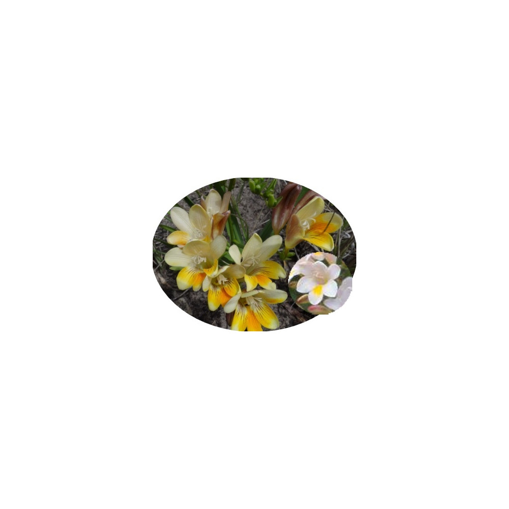 Frézie, cibulovina dorůstající do výšky 30cm. Vegetační dobu má rostlina od podzimu do jara, kdy kvete, přes léto je rostlina ve vegetačním klidu. Silně vonné krémové květy se žlutými znaky.