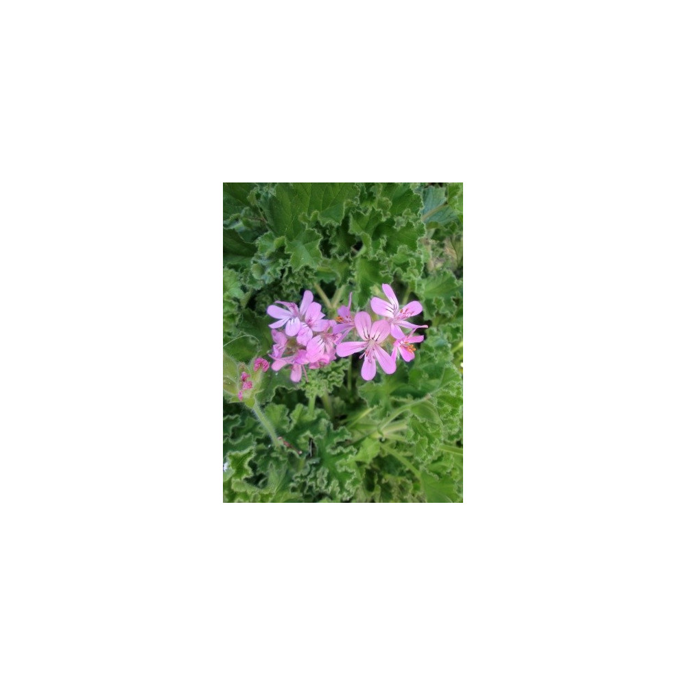 Pelargonie s nízkým keřovitým růstem a růžovými květy. Listy a stonky jsou pokryty chloupky a při pomnutí sladce voní. Z rostliny se získává olej a rozetřené listy slouží ke zjemnění pleti na popraskanou kůži, škrábance a také...