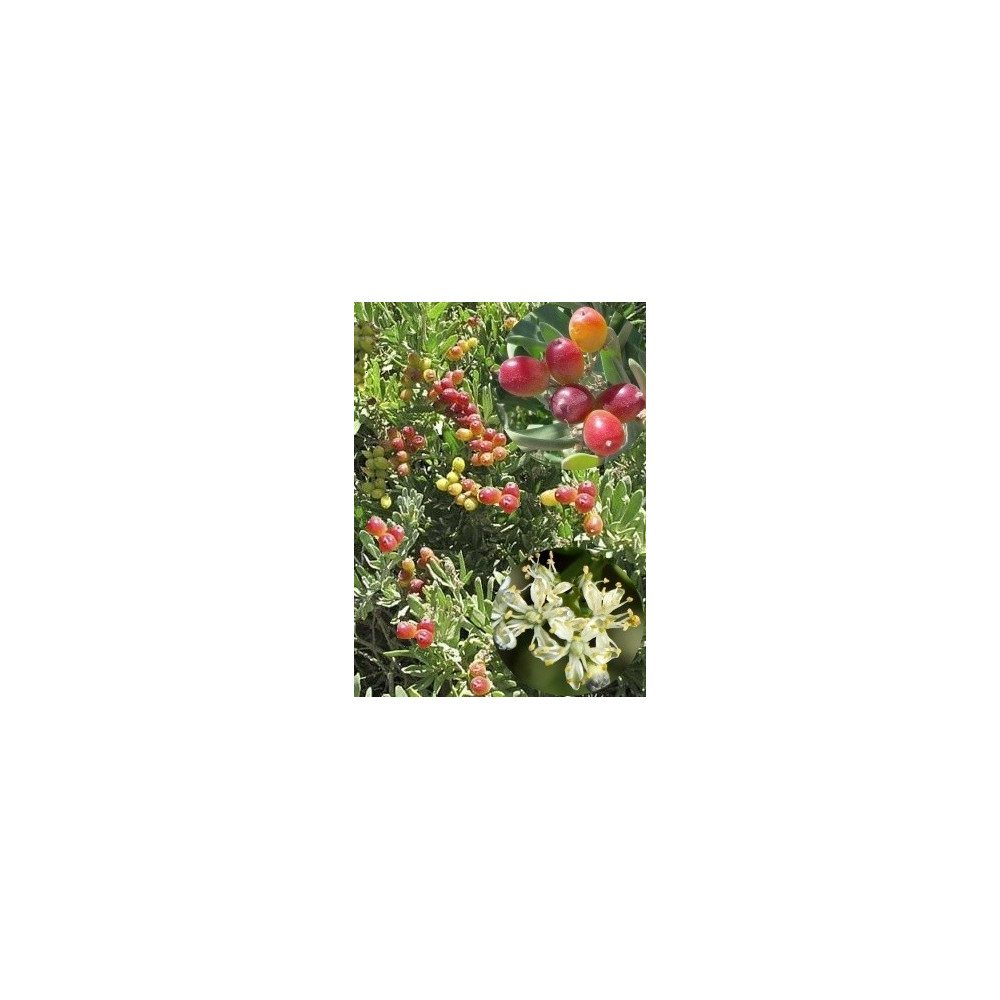Nízký keř 1 až 2 metry vysoký s úzkými listy a bílými květy. Jedlé plody jsou v plné zralosti červené a 1-2cm velké. Plody lze konzumovat syrové nebo sušit. Roste na hlinitých nebo jílovitých půdách. Je velmi tolerantní soli a pobřežním podmínkám. Tato rostlina je suchu odolná a pochází z Austrálie.