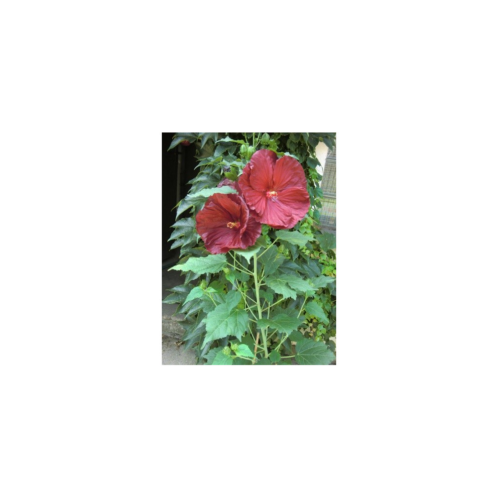 Ibišek bahenní, tmavě červené-rudé květy mají průměr až 25cm. Dorůstá do 120cm a je mrazuvzdorný do -27°C při použití ochrany. Koncem podzimu stonky odumřou a na jaře opět vyrazí. Může se pěstovat i v nádobách.