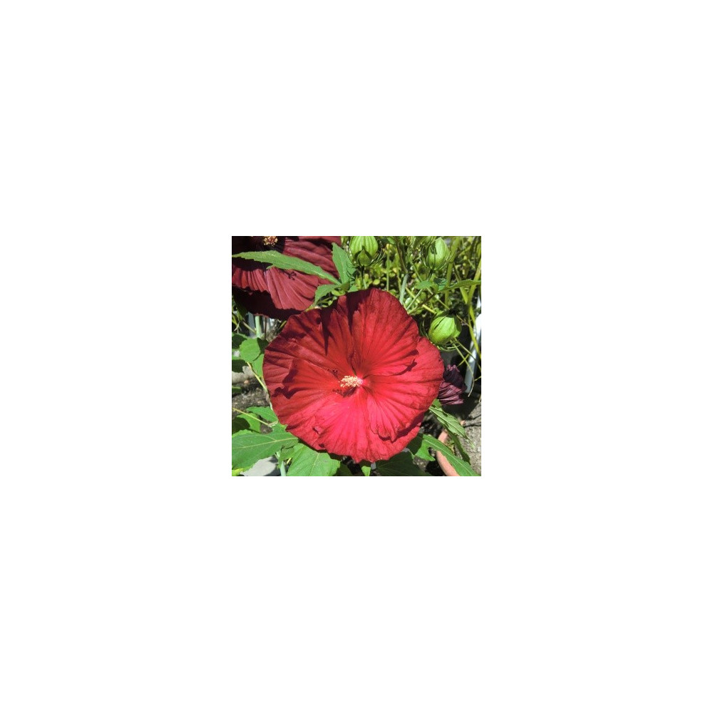 Ibišek bahenní, zeleno-fialové listy a karmínově červené květy s průměrem až 25cm. Dorůstá do 120cm a je mrazuvzdorný do -27°C při použití ochrany. Koncem podzimu stonky odumřou a na jaře opět vyrazí. Může se pěstovat i v nádobách.