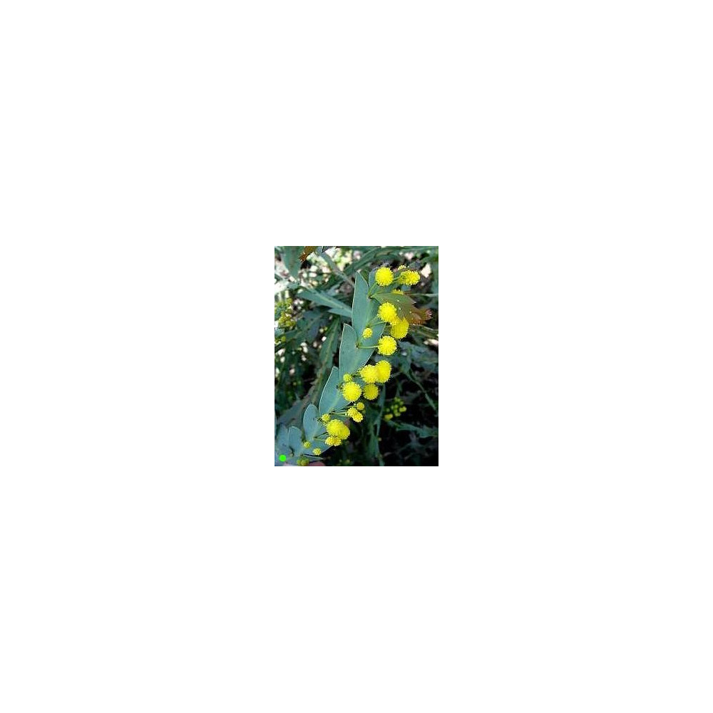 Akácie, dorůstá do 1metru. Unikátní neobvyklé zploštělé (šedozelené) listy z jejichž centrální žíly vyrůstají stopky se žlutými kulatými květy. Zajímavý netradiční druh. Mrazuvzdorná do -7°C. Pochází z Austrálie.