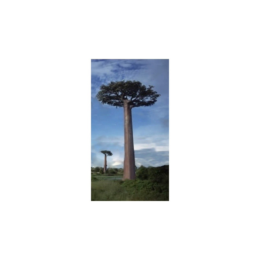 "Lahvový strom", "Grandidier's Baobab" Opadavý strom v přírodě až 25m vysoký s plochou korunou pochází ze západního Madagaskaru.Tlustý lahvový kmen s hladkou červeno-šedou kůrou. 5-7 dlanité listy. Velké vonné až 10cm dlouhé žluté květy s bílými tyčinkami. Jedlé oválné nahnědlé plody. Madagaskarský endemit. Jedna z hlavních turistických atrakcí na Madagaskaru - známá alej baobabů nedaleko Morondava se skládá z tohoto druhu.
