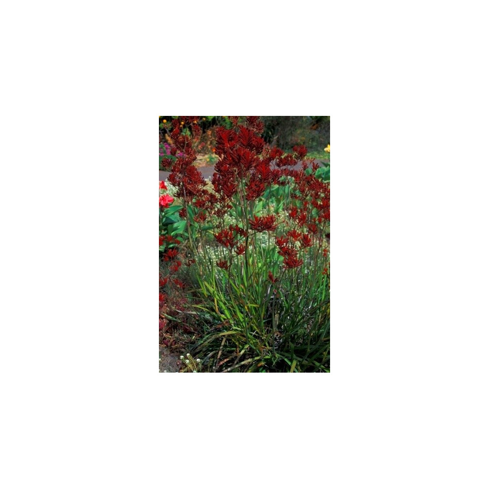 Anigozanthos "Červené klokaní tlapky" Vytváří bazální růžici 30 až 60cm dlouhých šedo-zelených listů. Červené trubkovité květy jsou pokryté chlupy a objevují se na konci dlouhých stonků. Roste na písčitých půdách. Pochází ze Západní Austrálie. Zajímavý druh. Květy vhodné k řezu.