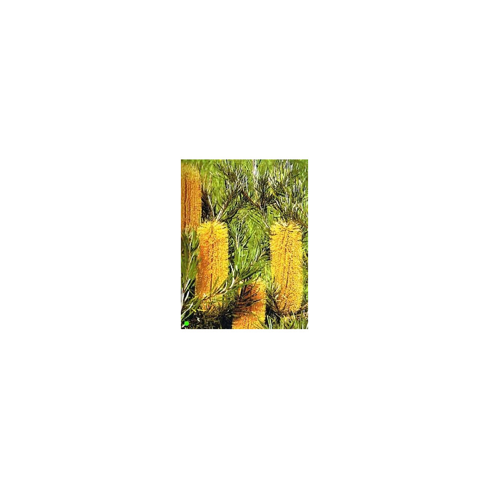 Keř, úzké krátké kopinaté listy, cylindrické žluté květy.