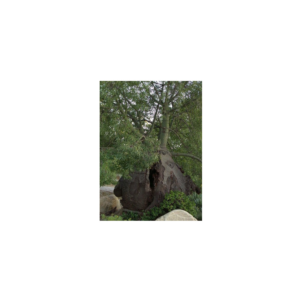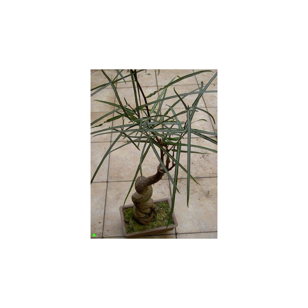Ztlustlé zakroucené kořeny, kopinaté dělené listy, nažloutlé květy s červenými skvrnkami. Velmi vhodný na bonsai. Pochází z australského Queenslandu.