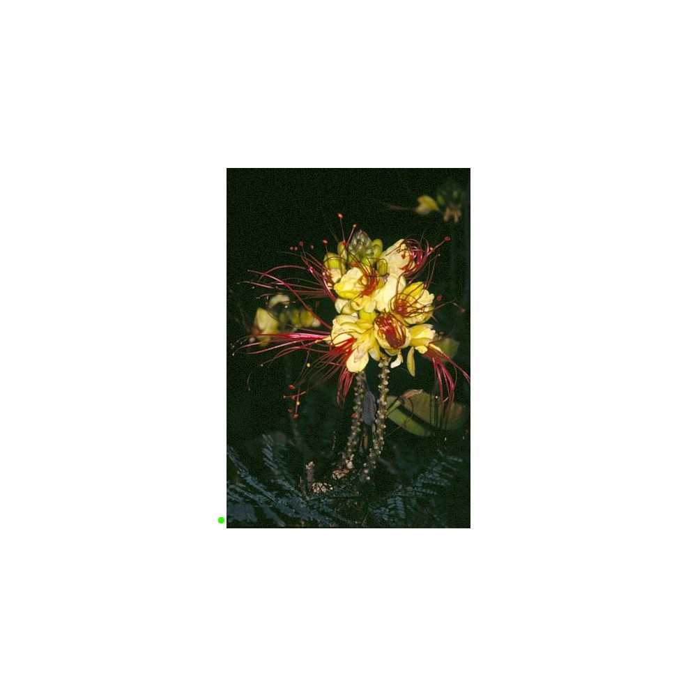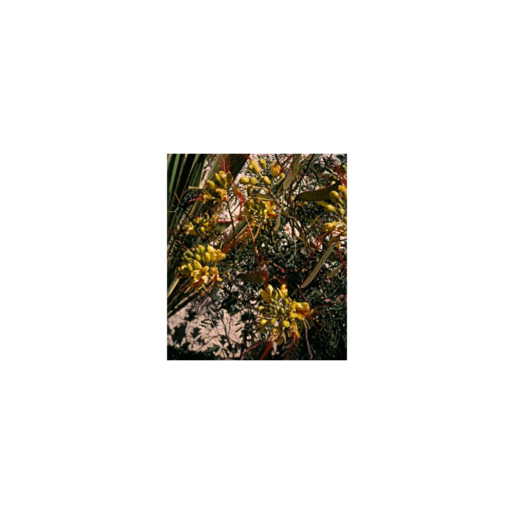 Sapan Gilliesův, exotické žluté květenství s rudými prašníky, jemné zpeřené listy, chladnuvzdorný druh.