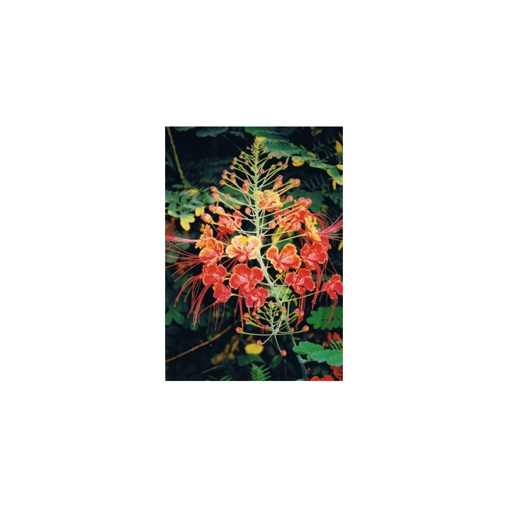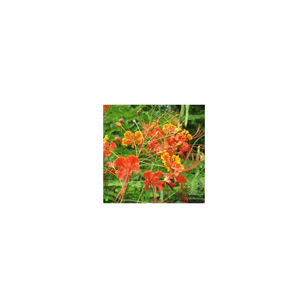 Sapan, krásné exotické žlutočervené květy, jemné zpeřené listy.