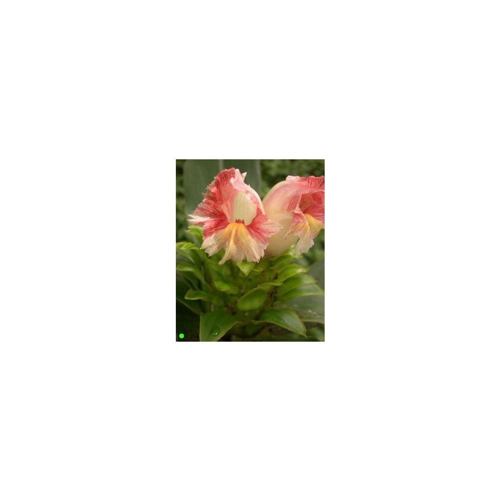 Zázvor, zelené listy s nažloutlými okraji,nádherné bílo-růžovo -žluté květy, pochází z tropických regionů jižní Ameriky, tvoří dužnaté kořeny, které musí být přes zimu na sucho.