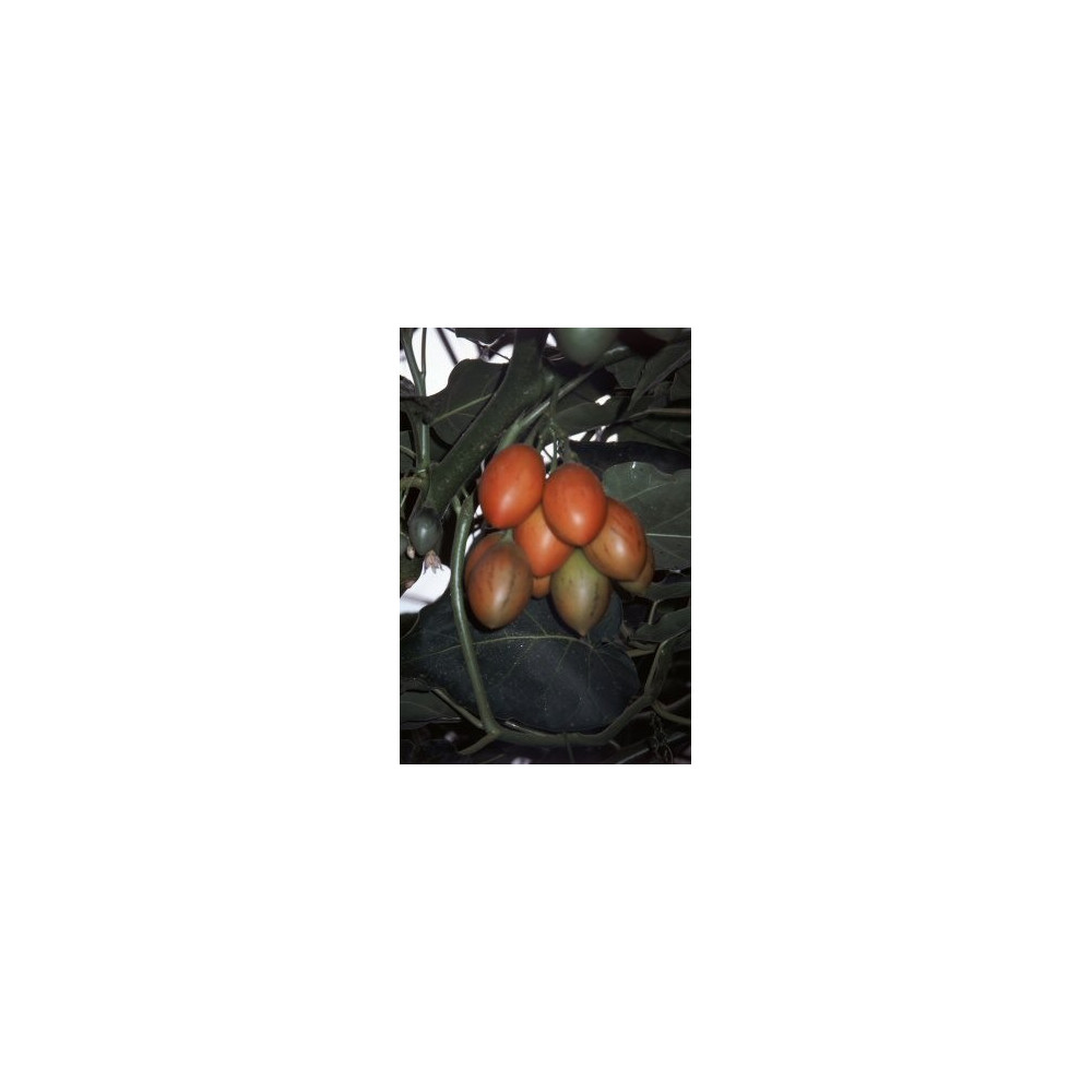 Rajčenka, keř s velkými načervenalými jedlými plody vejcovitého tvaru.