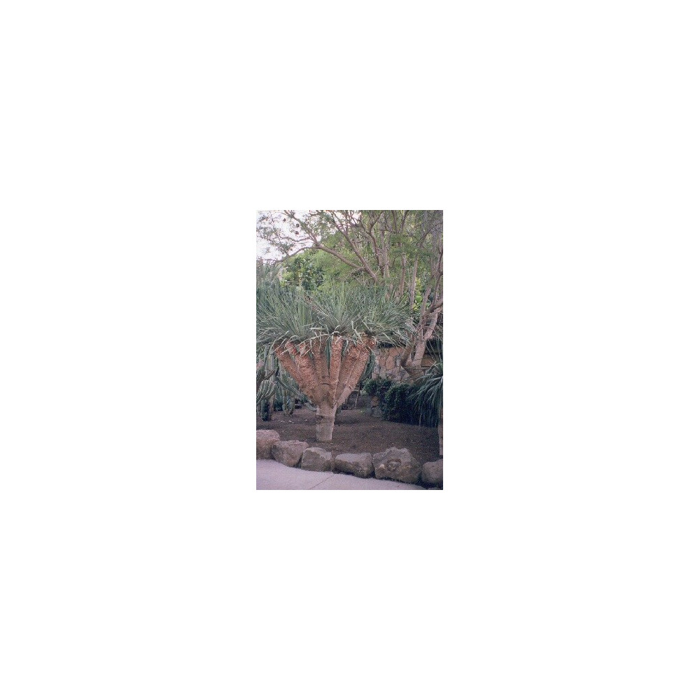 Dračinec, rozvětvený kmen s kšticemi ostrých listů na vrcholu. Z kmene po naříznutí vytéká červená pryskyřice tzv. dračí krev