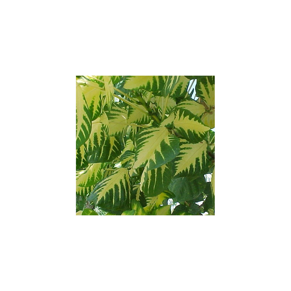 Stálezelený keř s oválnými, lesklými, tmavě zelenými listy se žlutým žíháním. Intenzivně vonné...