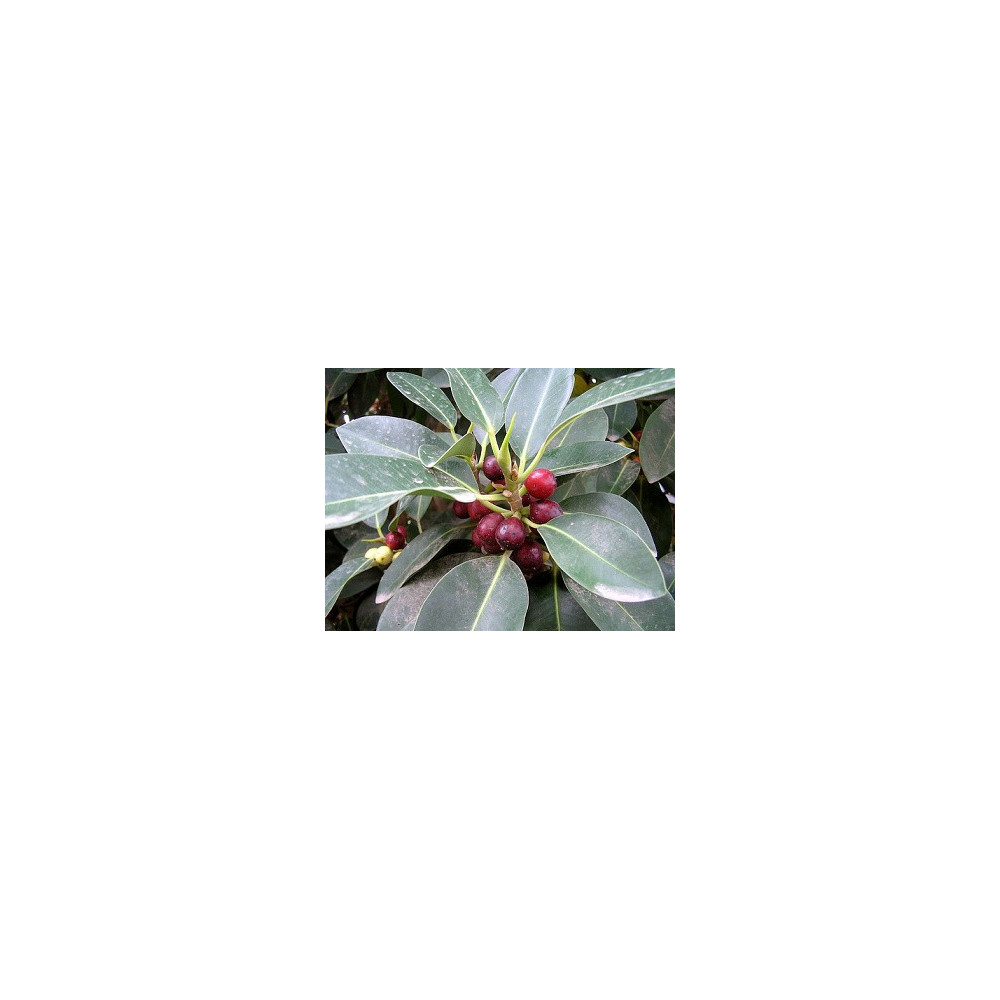 Velké lesklé tmavě zelené oválné listy na spodní straně s hnědými chloupky. Kulaté malé červené jedlé plody. Velmi ztlustlé kořeny. Vhodný pro bonsai.