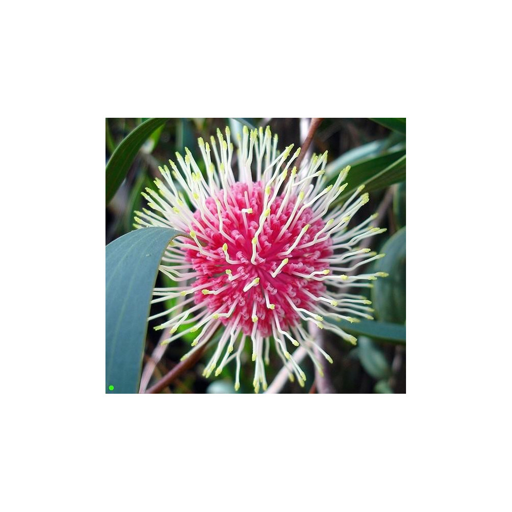 novozélandský vánoční strom, vzácný druh, kartáčovité žluté květy, zelené vejčité listy na...