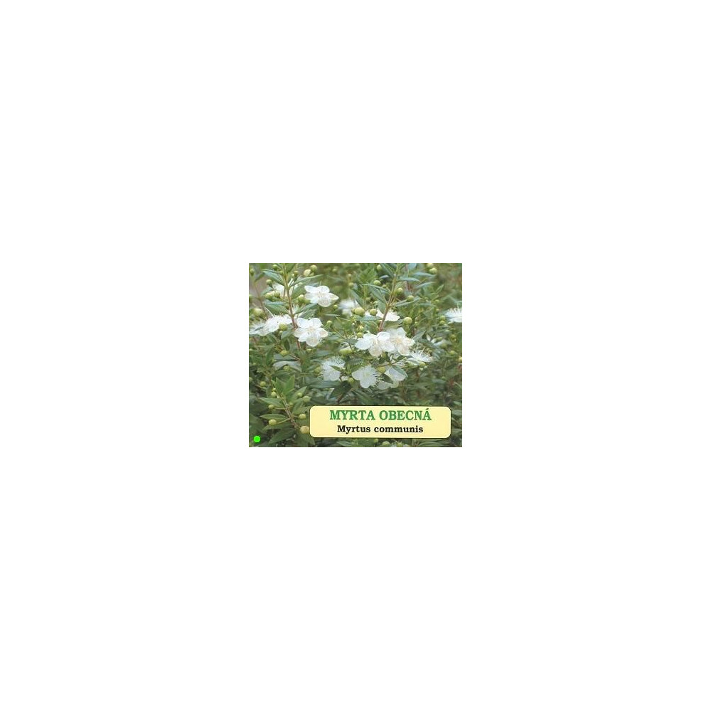 Myrta, stálezelený keřík s kopinatými aromatickými listy a bílými květy. Vhodná pro tvarování na bonsai.