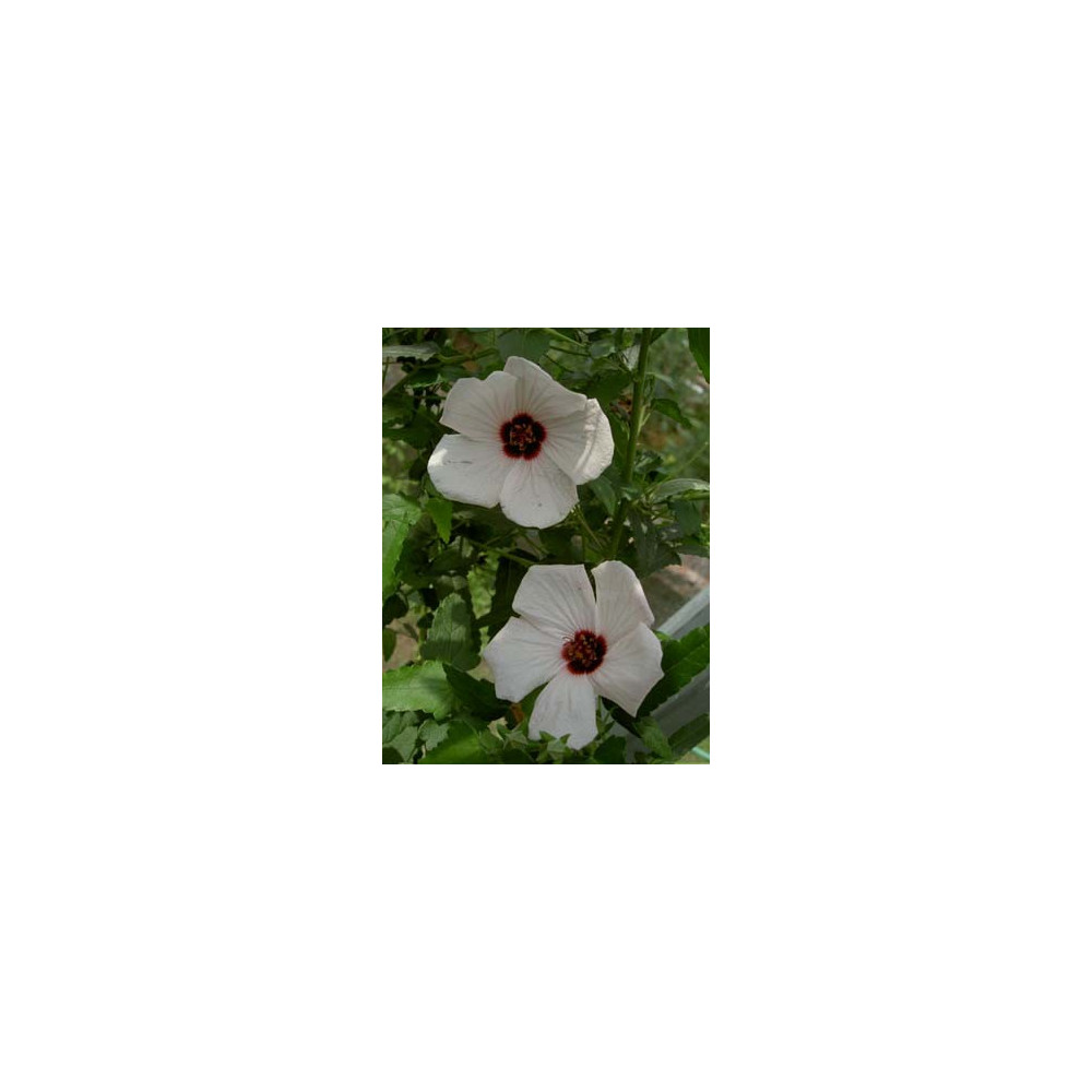 nízký keřík, velmi pěkné ibiškovité slabě narůžovělé květy s tmavě vínovým středem, kvete 1.rokem, vděčný druh