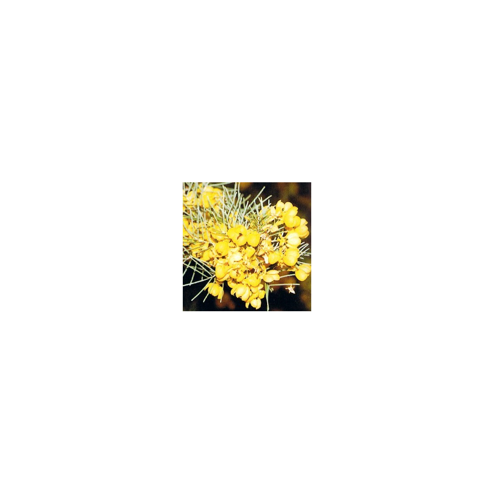 keř 2m, žluté miskovité květy, stříbrné zpeřené listy, brzy kvete