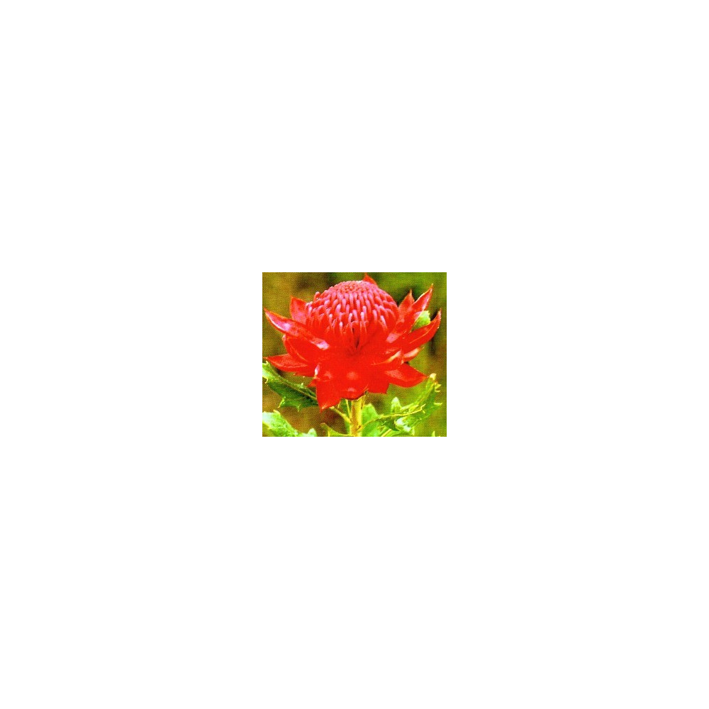 Protea australská, velké červené květy na dlouhých stoncích, ideální k řezu, zubaté listy, odolává slabšímu mrazíku, květ je symbolem australského NSW.