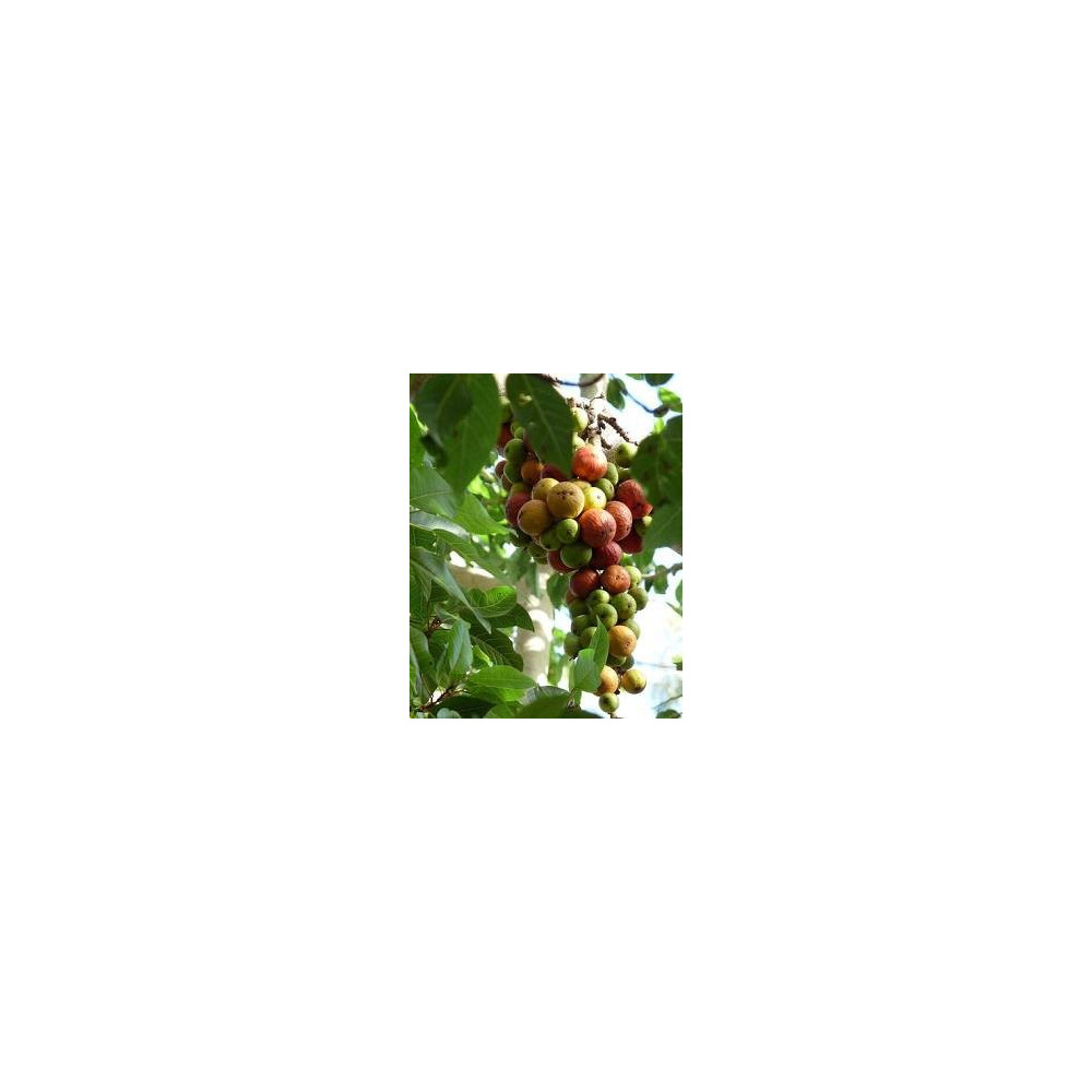 Fíkovník hroznovitý, opadavý strom se střídavými, eliptickými, tnavě zelenými listy. V plné zralosti oranžovo -červené jedlé fíky v krátkých hroznech vyrůstají přímo z kmene. Vhodný pro bonsai. Šťáva z plodů je účinná na škytavku.