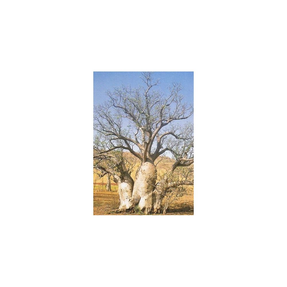 Australský baobab, 5cm vonné bílé květy, složené listy, ztlustlý kmen, kulaté 10cm velké jedlé plody,vhodný na bonsai, pachykaulní sukulent.
