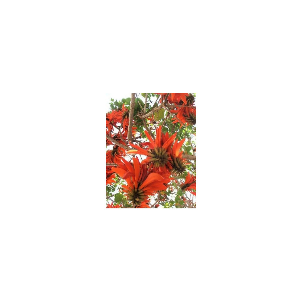 Opadavý strom s šedou až hnědou hladkou kůrou. Šarlatové květy v hroznu. Pochází z jižní Afriky.