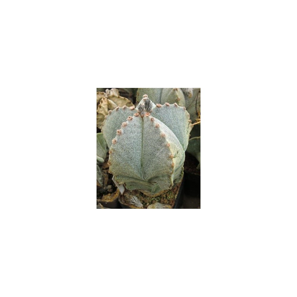 Pětižeberný, beztrnný kaktus, kerý je znám pod názvem "Biskupská čepice" má tmavozelenou pokožku, která je pokryta bílými hustými vločkami. Velké žluté květy jsou asi 35-55 mm široké. Původem ze středního Mexika.