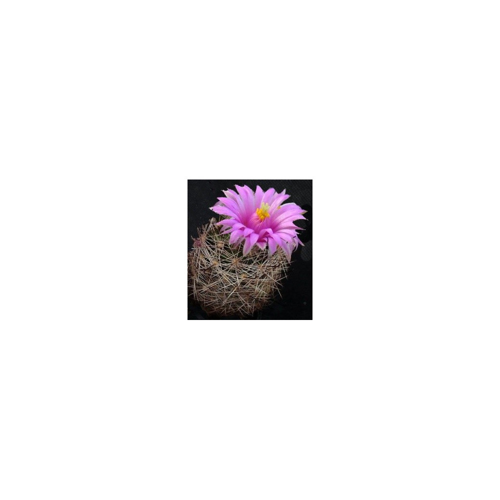 Kulovitý na povrchu zploštělý kaktus. Drobné, bělavé-nahnědlé ostny. Žlutooranžové květy jsou 3cm...