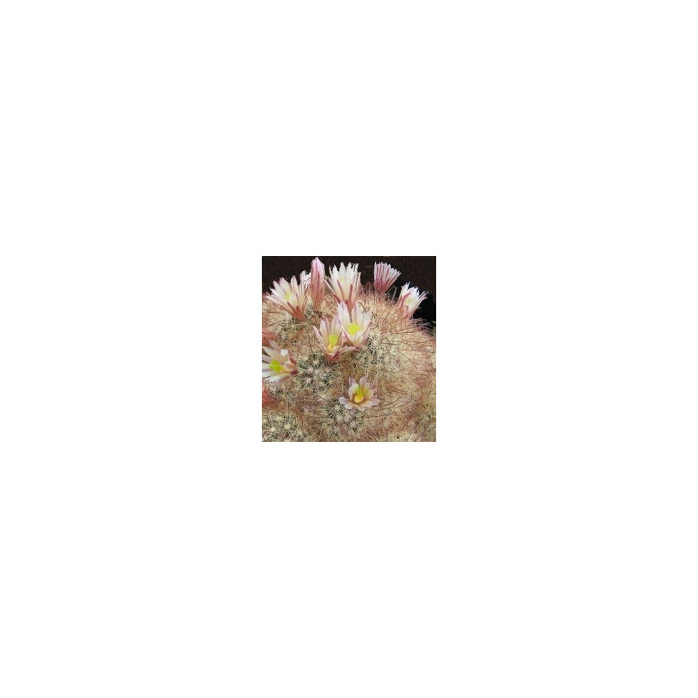 Kulovitý, později krátce válcovitý kaktus se žlutohnědými ostny. Krémově bílé květy s růžovými proužky jsou 1,5cm široké. Pochází z Mexika.