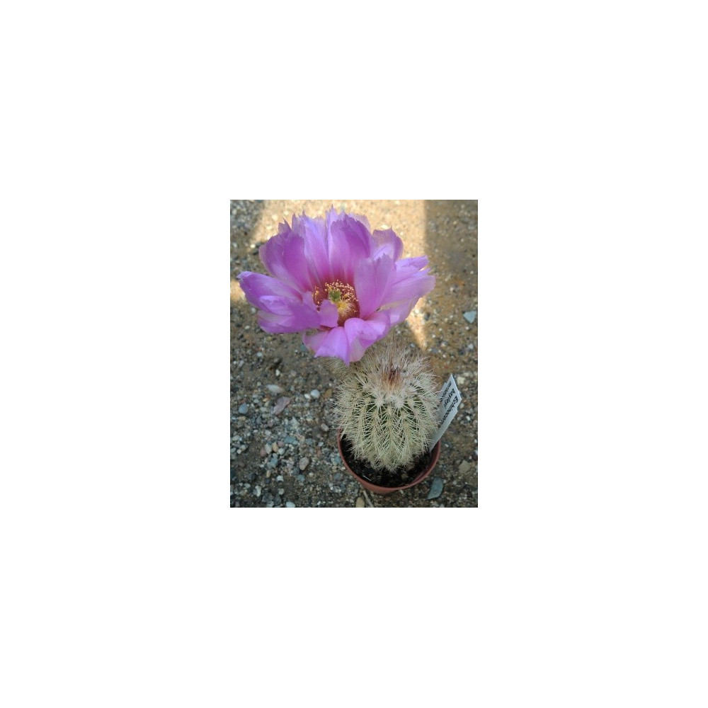 Populární kulovitý kaktus hustě pokrytý dlouhými, bílými vlákny. Malé fialově - růžové květy jsou...