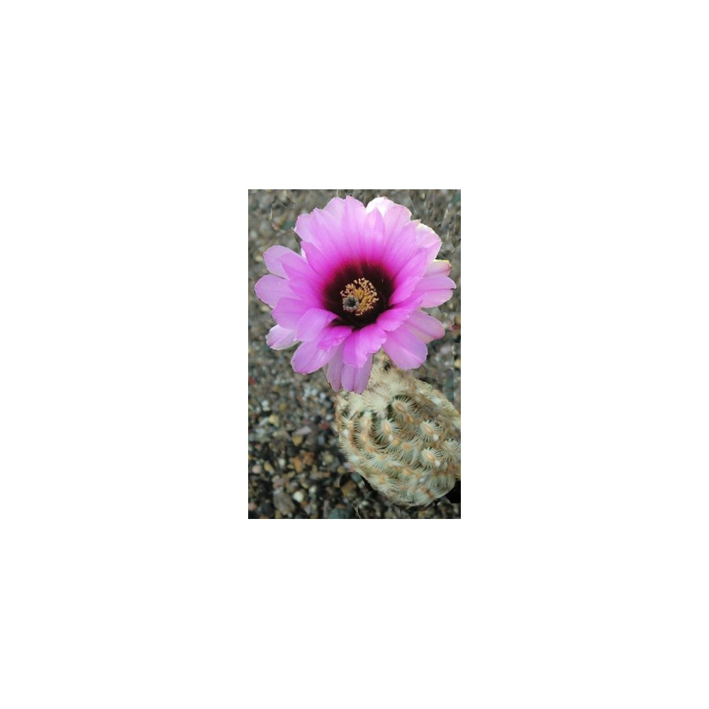 Malý, kulovitý kaktus, který dosahuje maximálně 6cm výšky. Bílé nebo světle hnědé ostny s tmavou...
