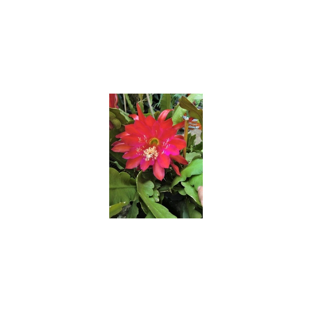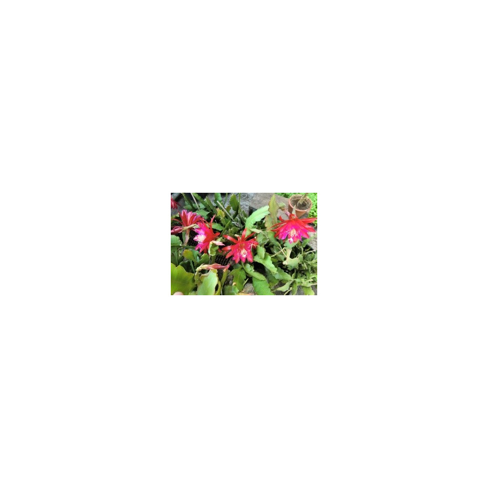 Nenáročný listnatý kaktus, vytváří článkovité stonky do 50 cm, starší výhony jdou do převisu,15 cm velké červené květy s fialkovým probarvením. V zimě vyžaduje chladnější pěstování okolo 10°C s omezením zálivky.