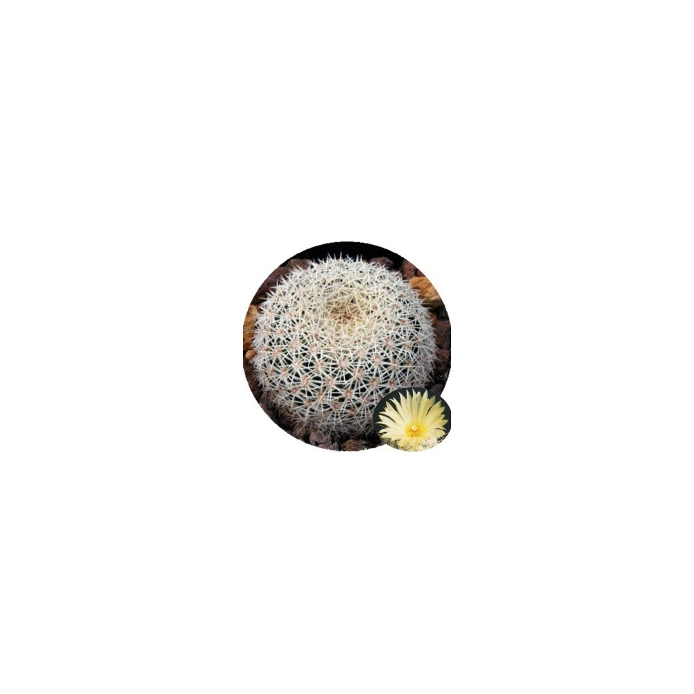 Atraktivní, kulovitý kaktus, který později odnožuje. Tělo je hustě pokryto ostny. Jasně žluté...