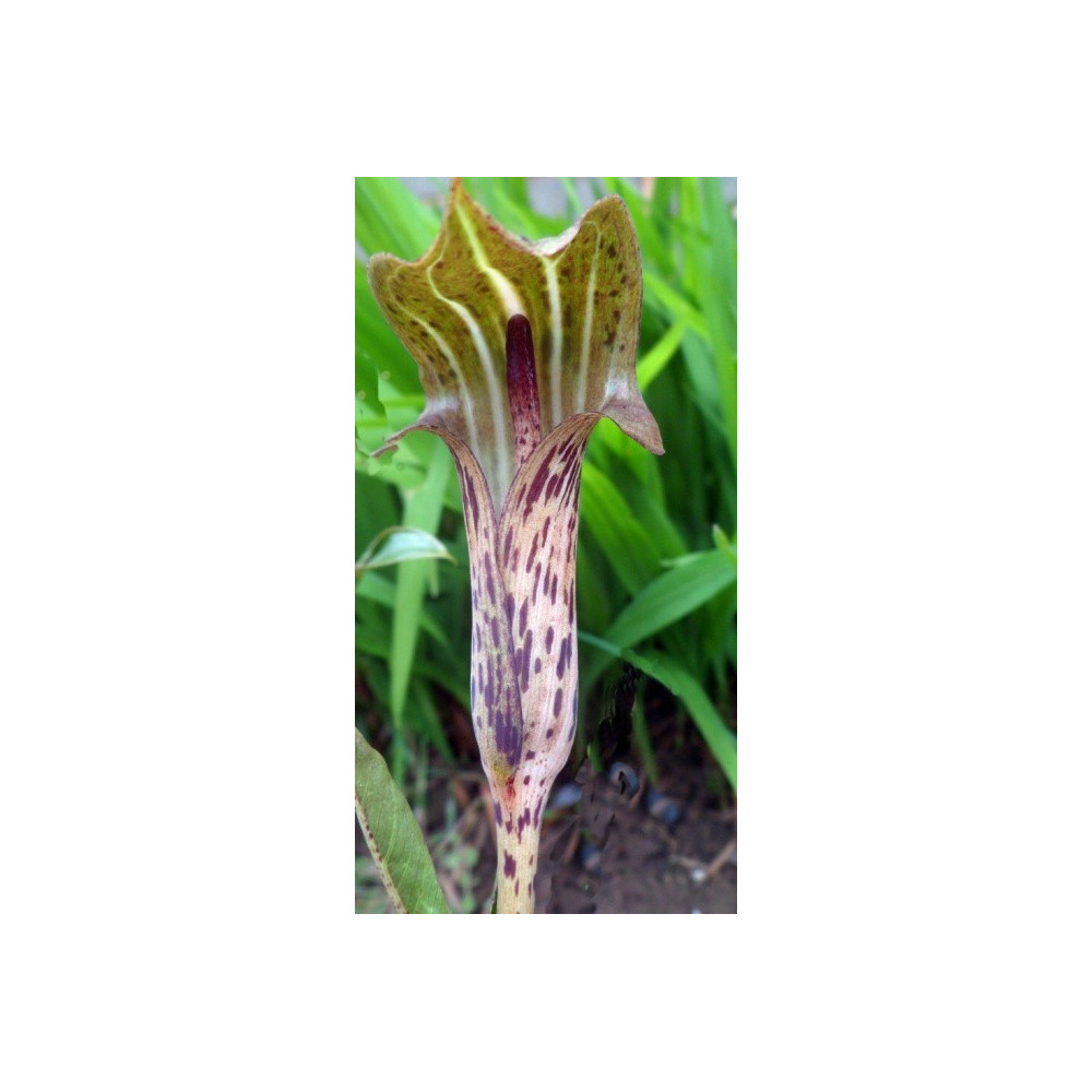 Toulcovitý květ s fialovými a hnědými skvrnami se žlutozelenýn hrdlem. Vytváří leskle zelené laločnaté listy a skvrnitý stonek. Nadzemní část na podzim odumře a hlízy se přes zimu uschovají. Roste ve vysokých nadmořských výškách mezi 2300 a 3300m v oblastech Himaláje, Nepálu a jihozápadní Číny.