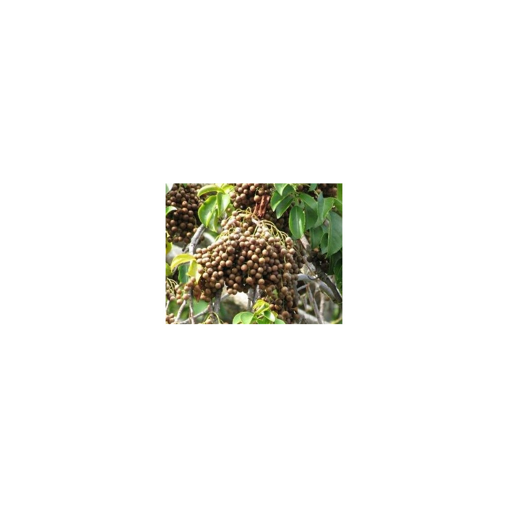 keřovitý strom, dlouhé zpeřené listy, 2,5cm nazelenalé květy v latách, modré jedlé plody až 10cm...