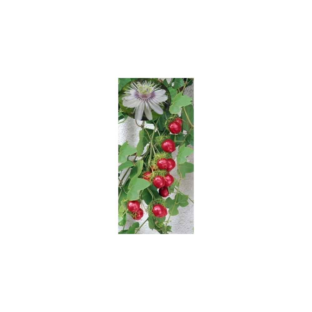 Mučenka s 3 laločnatými, jemně zoubkovanými listy. Krátce trubkovité, šarlatové květy mají průměr...