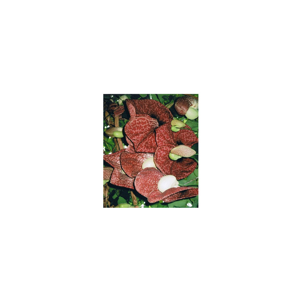 Podražec, tropická mohutná liána s velkými, tmavě zelenými listy ve tvaru srdce. Obří vínové květy s bílou kresbou mají až 30cm v průměru. Pochází z deštných lesů v jihovýchodní Brazílii. Dorůstá do 3-10m.