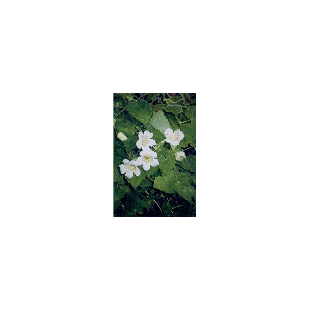 Asarina "Popínavá Gloxinie", mléčné bílé květy ke konci rozšířené mají průměr 5cm, trojhranné sametové listy, dorůstá do 2- 3m. Při pěstování v nádobách je možné přezimovat rostliny na bezmrazém místě.