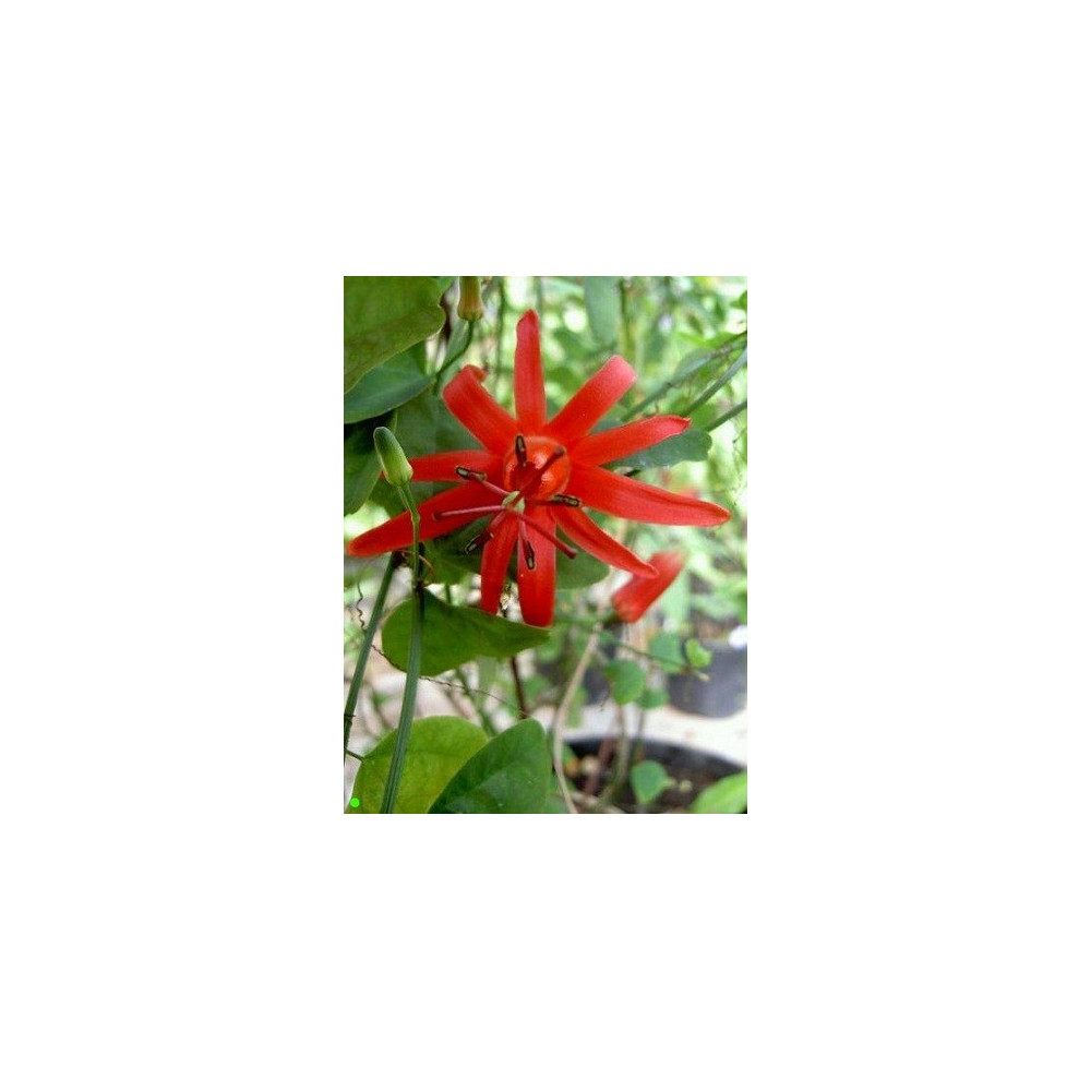Mučenka, velmi zajímavé 5cm velké červené květy, dvoulaločné listy, purpurové plody 1cm, pochází z Portorika a Dominikánské republiky.