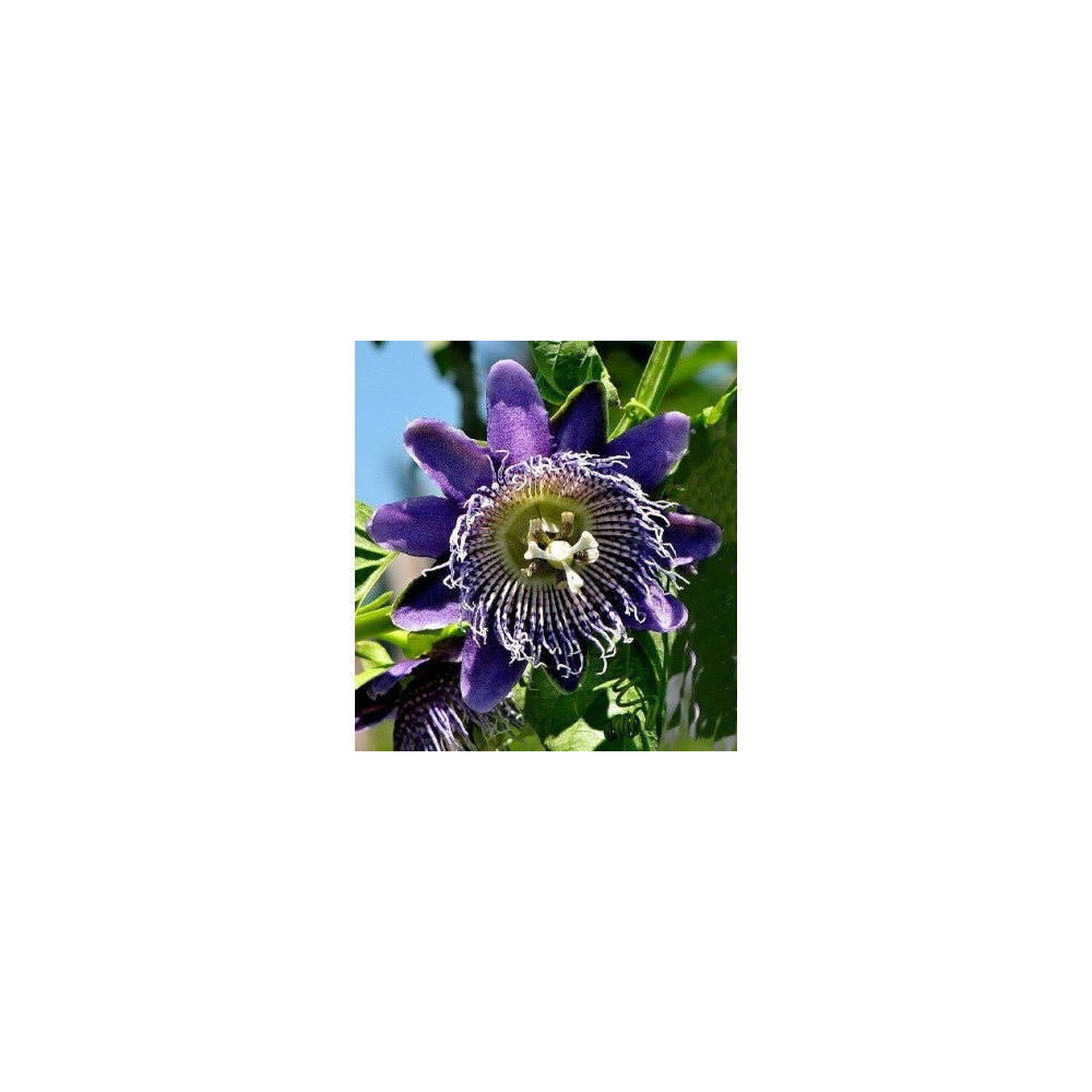 Mučenka jedlá (purpurová), květy 8 cm široké s bílými korunními plátky a fialovobílými zvlněnými...