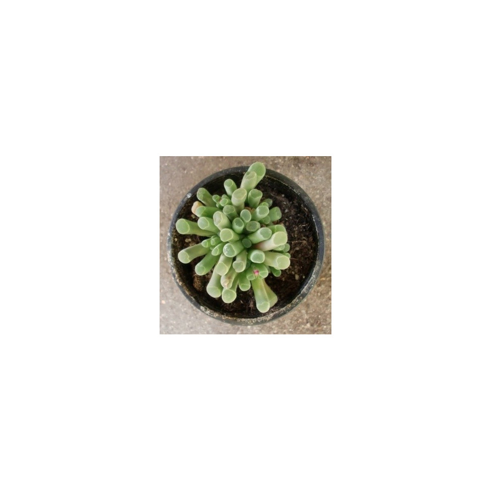 Trubkovité, na vrcholu zploštělé listy vytváří nízkou růžici. Purpurové květy s bílým nebo světle žlutým středem o průměru 2,5 - 3,5 cm. Je endemický v Jižní Africe.