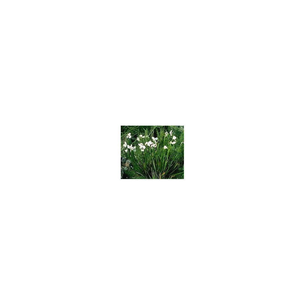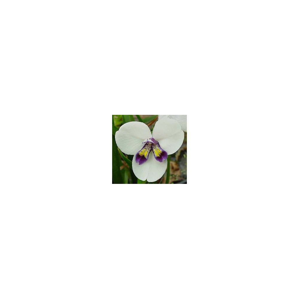 Okrasná trvalka s úzkými zelenými listy. Bílé květy s fialovými a žlutými znaky. Dorůstá do 60cm. Pochází z Tasmánie.
