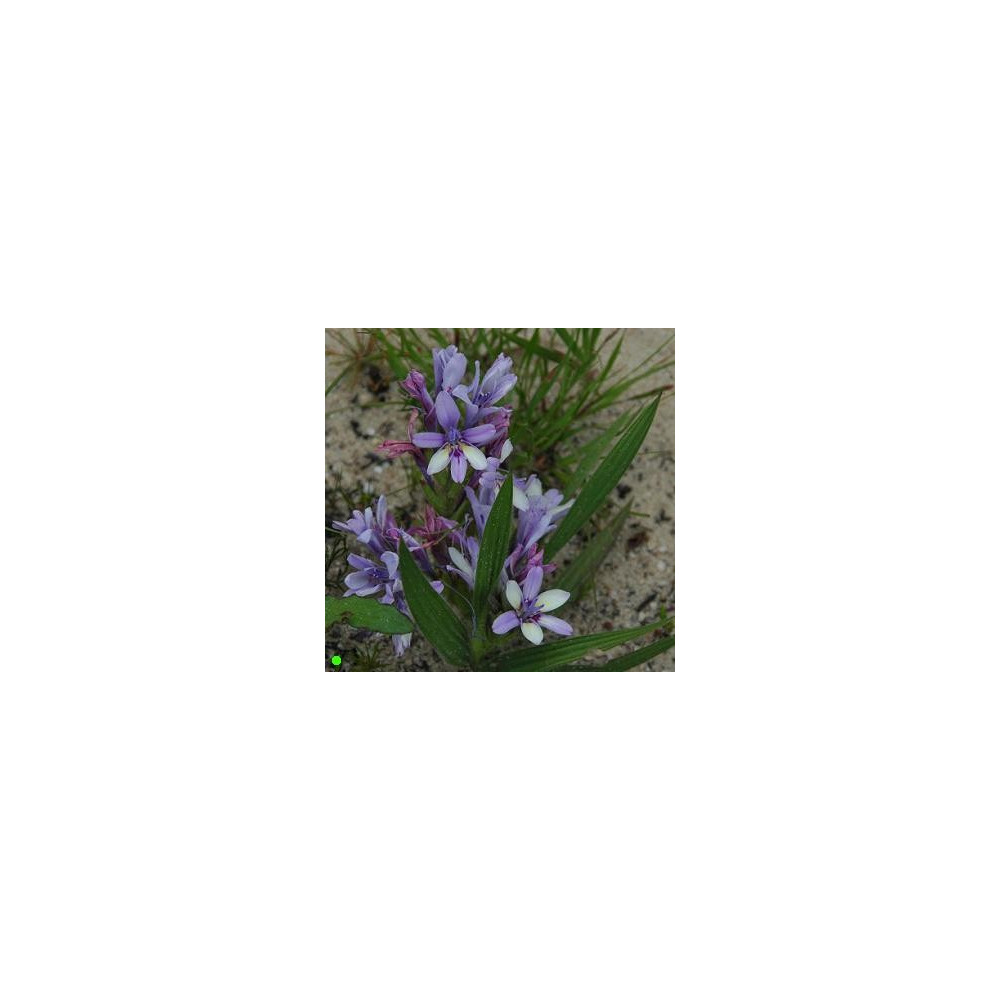 Vyšší druh s úzkými mečovitými listy, lila květy v klasovitém květenství. Dorůstá do 60cm.