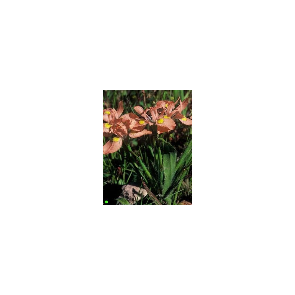 Zakrslá Moraea s vonnými lososově růžovými / žlutými květy. Dorůstá do 20cm.