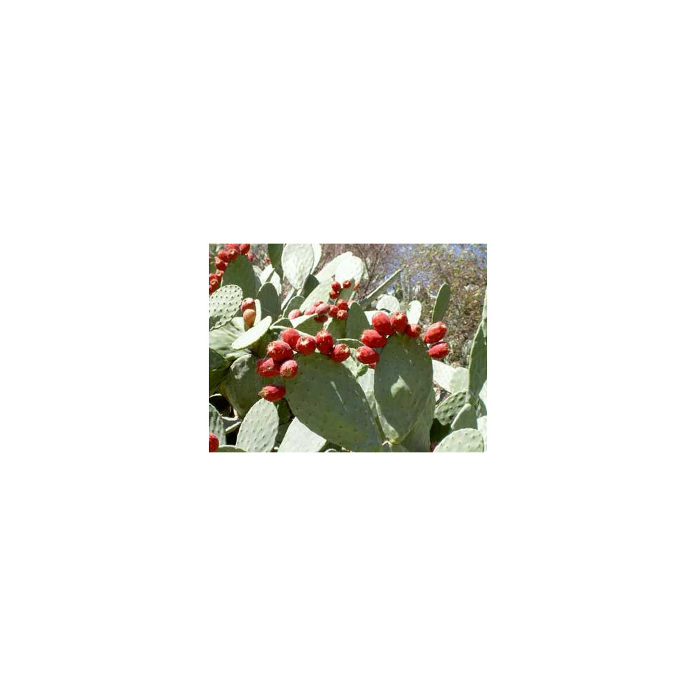 Opuncie mexická, velké zelené dužnaté listy se svazečky krátkých štětin, velké žluté květy, jedlé šarlatové plody 7-30gr.se sladkou šťavnatou dužinou chutí podobné jahodám, plody se konzumují čerstvé nebo sušené, slouží také k