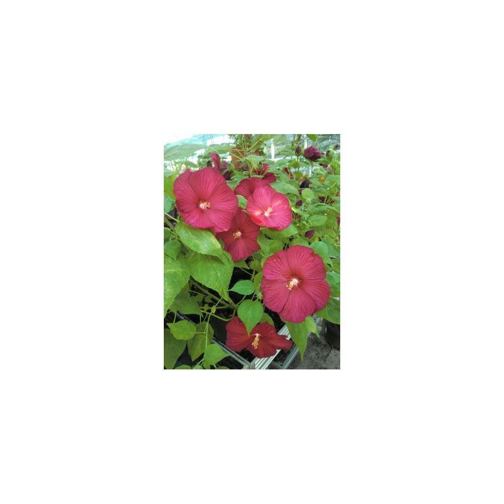 Ibišek bahenní, krásné červené květy o průměru až 20cm, dorůstá do 120cm. mrazuvzdorný do -25°C při použití ochrany. Koncem podzimu stonky odumřou a na jaře opět vyrazí. Může se pěstovat i v nádobách.