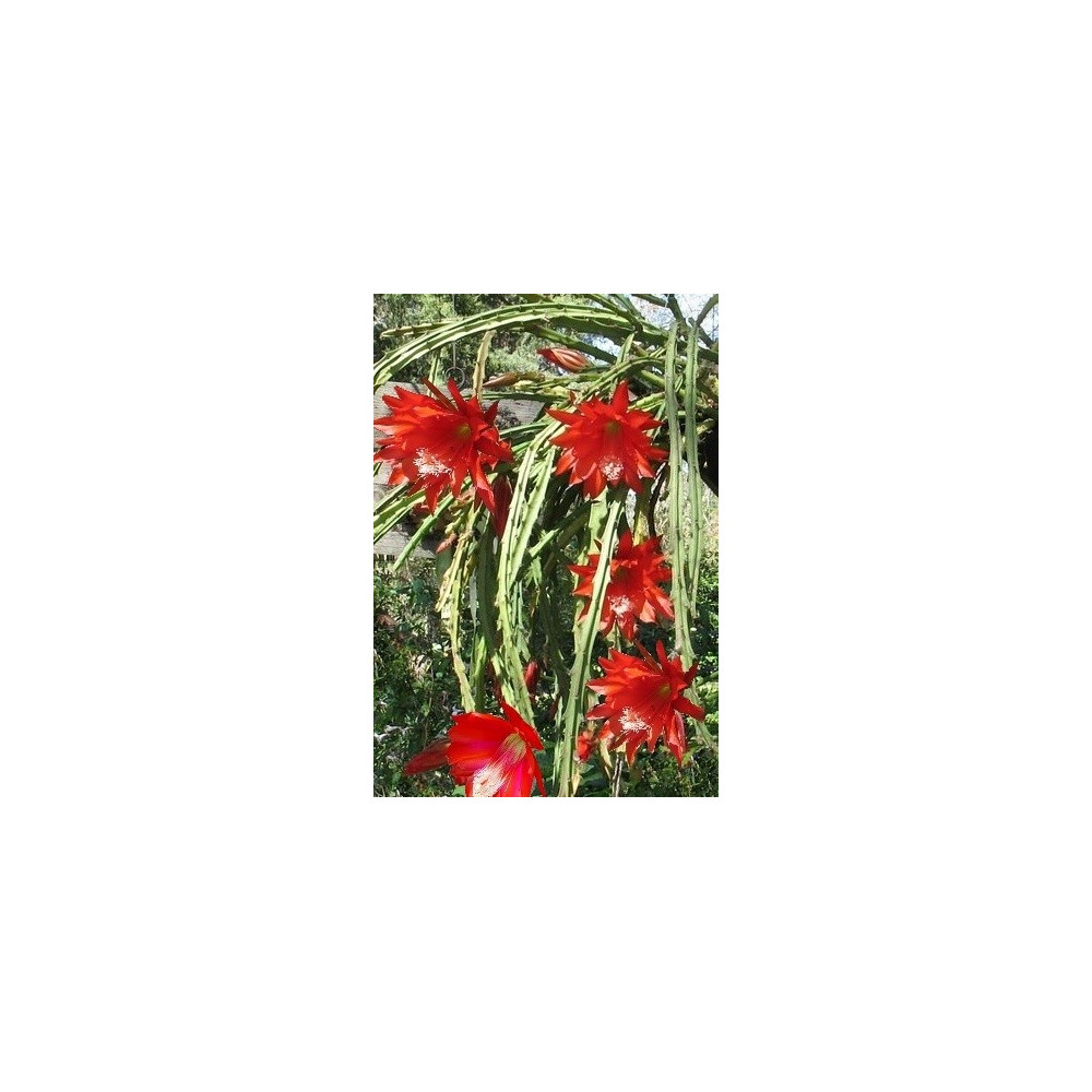 Rozvětvený kaktus zpočátku vztyčený, později s převislými žebrovanými výhony, které jsou po okrajích vroubkované. Široké, šarlatové nálevkovité květy jsou dlouhé 11 až 15 cm a mají 8 až 12 cm v průměru. Vejčité, jedlé, červené plody o velikosti až 5cm. Roste epifyticky.Pochází ze střední a jižní Ameriky.