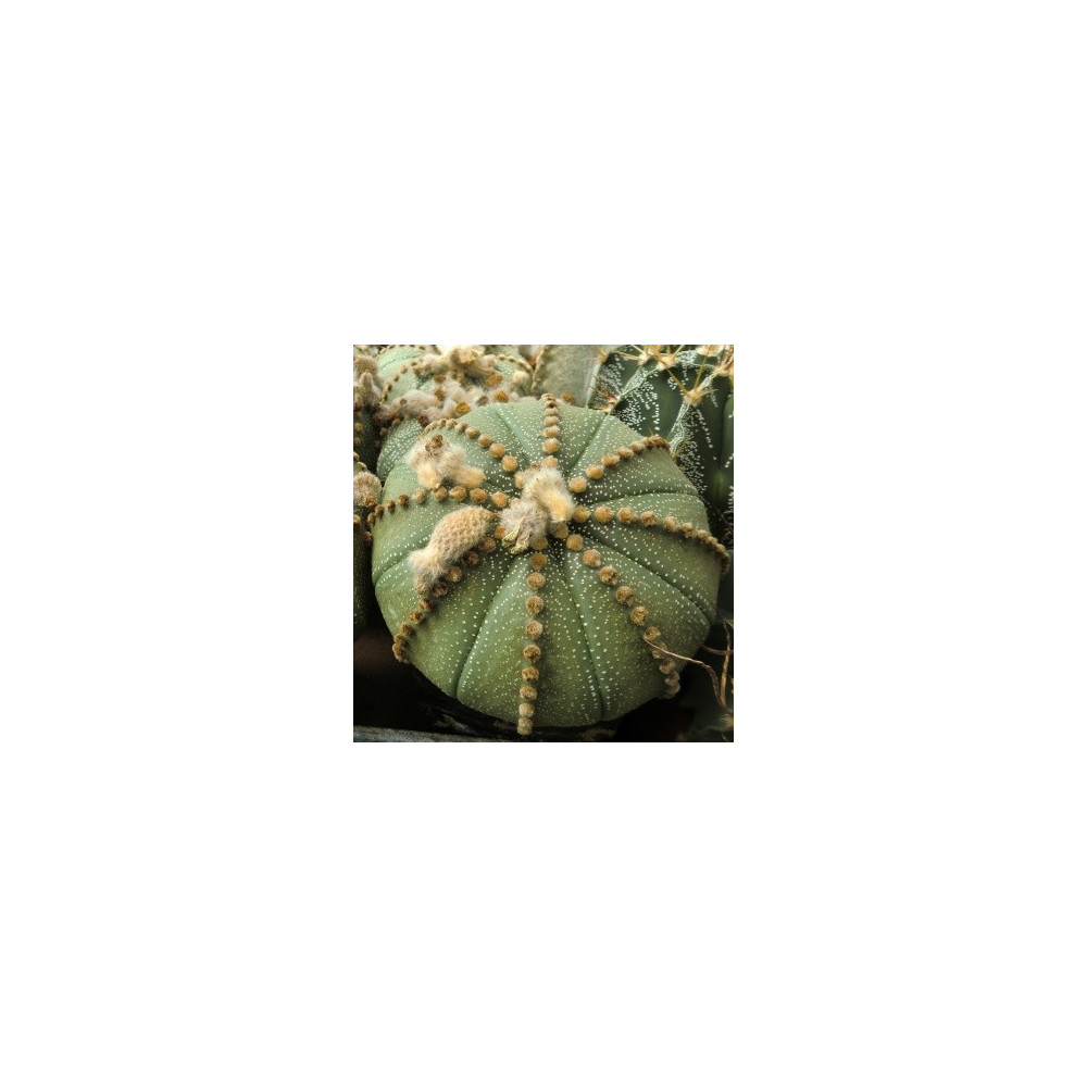 Kulovitý na povrchu zploštělý, miniaturní kaktus. Stříbřitě bílé, husté ostny. Vytváří shluk...