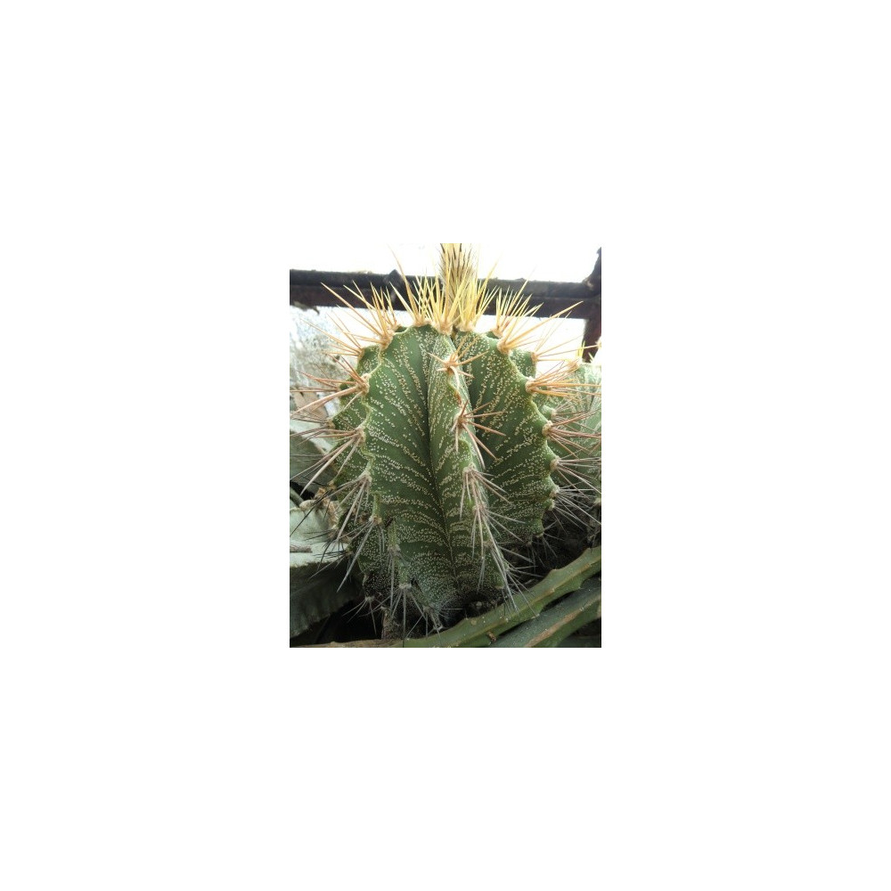Válcovitý kaktus s ostrými žebry, která jsou občas zvlněná. Načervenalé až šedé trny jsou...