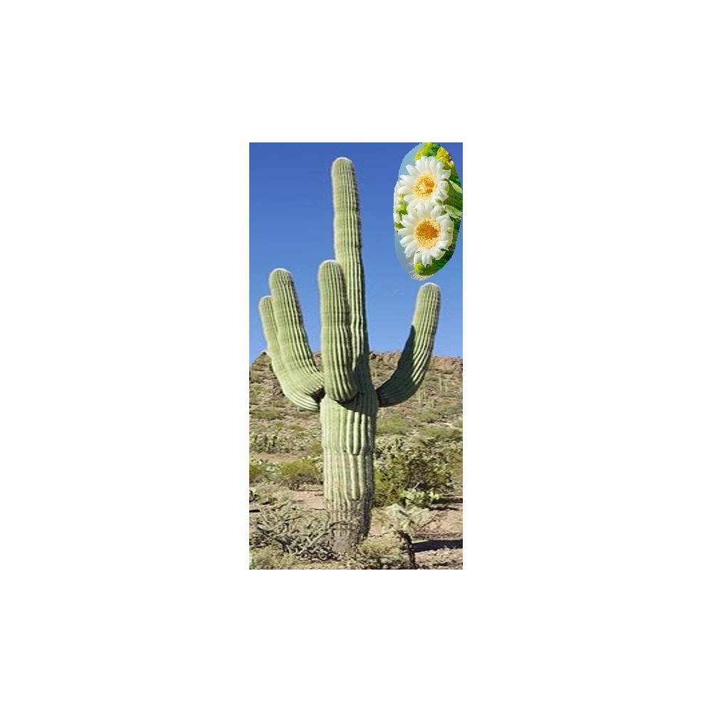 Saguaro je nejvyšším druhem mezi kaktusy a oficiálním rostlinným symbolem státu Arizona. V přírodě gigantický sloupovitý kaktus, který se později větví. Žebra pokrývají bílé-šedé trny. Nálevkovité, bílé květy dosahují průměru 6,5–8,5 cm. Poskytuje jedlé, vejcovité, masité plody, které jsou až 9cm dlouhé, ze kterých se dají vyrábět džemy nebo kaktusové víno. Roste v polopouštních a pouštních oblastech. Nejznámější kaktus z filmových westernů nebo mayovek.