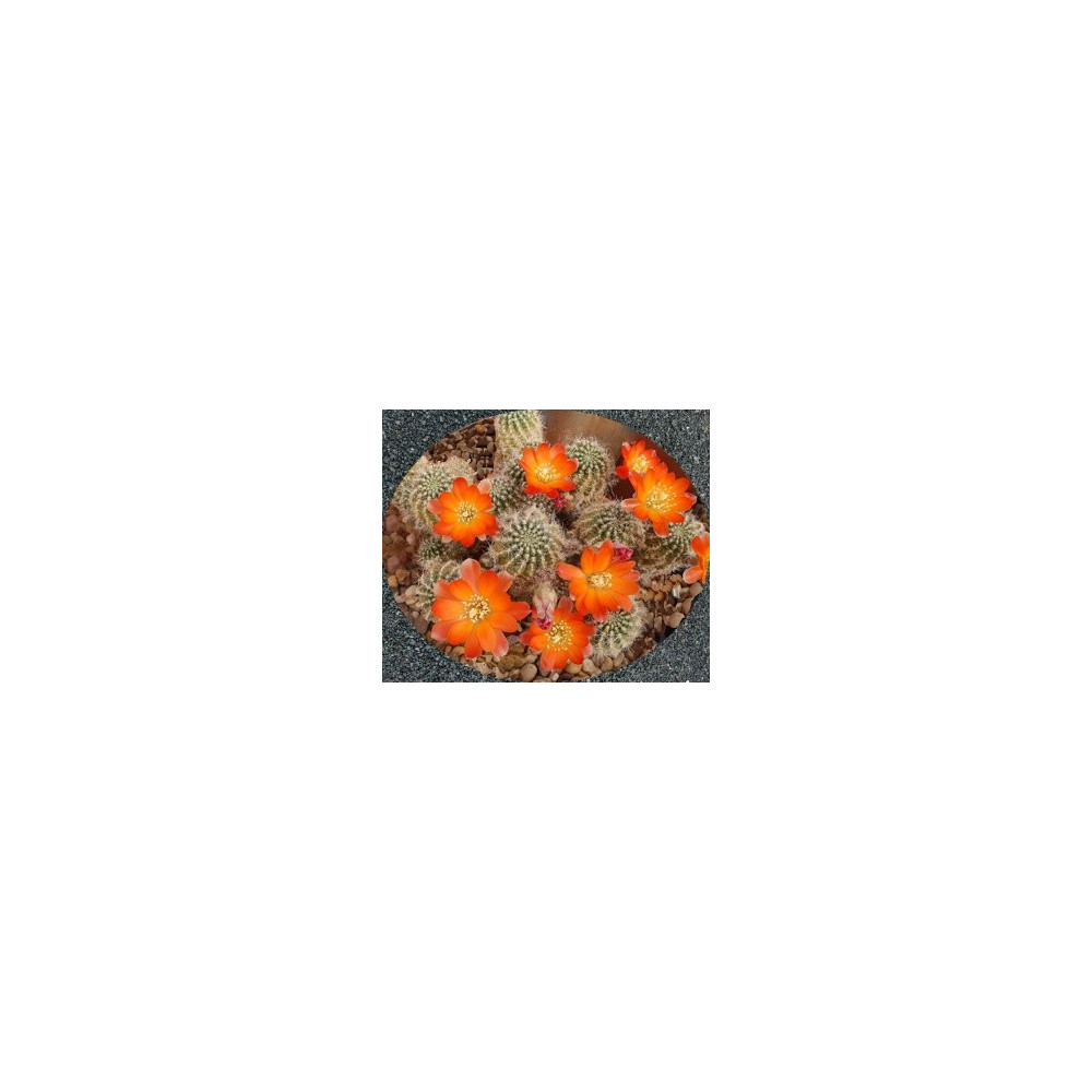 Malý, kompaktní, zelený kaktus. Krátké, nahnědlé ostny. Zářivě oranžovo-červené květy 4,5cm v...